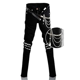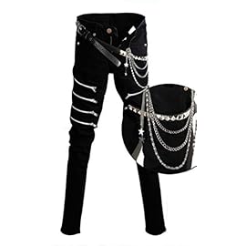 Jeans are cut, torn, trimmed or tucked to the knees. Pieces of cloth are sewn onto the trousers from above and decorated with pins, chains, and paint. It used to be harder – punks painted their things on their own with paint in spray cans, but now a lot is sold ready-made.
