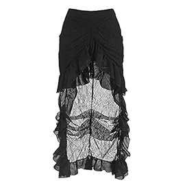 Killreal Women’s High Waist Victorian Steampunk Gothic Hi Low Skirt
