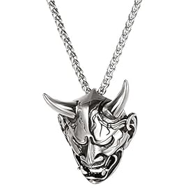 Men Gothic Jewelry Stainless Silver Black Evil Demon Horn Skull Pendant Necklace