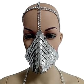 ShiningLove Steampunk Metal Head Chain Mask Face Jewelry for Halloween Cospaly Party Fancy Dress Ball Gift Silver