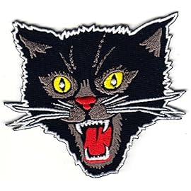 HHO Black Screaming Cat Rockabilly Horror Tattoo Goth Punk Patches, Cute Applique Sew Iron on Kids Craft Patch for Bags Jackets Jeans Clothes