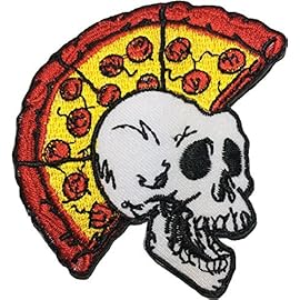 Papapatch Skeleton Skull Pizza Head Punk Ride Motorcycle Chopper Jacket Vest Costume DIY Sew Iron on Embroidered Applique Badge Sign Patch (IRON-SKULL-PIZZA-PUNK)