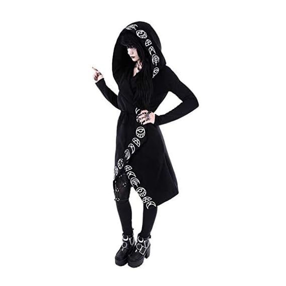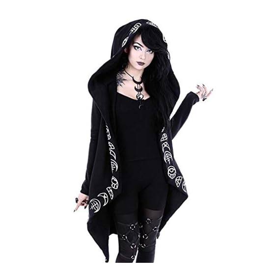 Women Punk Gothic-Black-Hoodies, Witchcraft-Hooded-Cardigan – Moon Hoodies Coat Top Sweatshirt