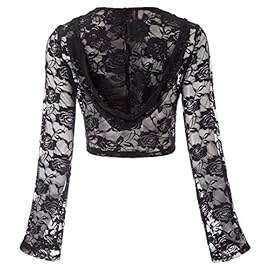Features: Long sleeve; Tie front; Fixed hood; See-through floral lace fabric